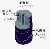 毛髪は毛髄質、毛皮質、毛表皮の3つの層からできていて、この透明な層を通して見えるメラニンの色が髪の色を決めています。