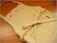 そこで、胸元に端切れを、ポケットにレースを、ちょこちょこっと縫いつけて模様替え。