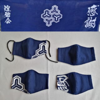こちらは数年前の江刺甚句まつりの年祝い連が、角付のお礼に配った手ぬぐいで作ったマスクです。