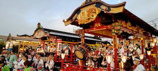 夕映えを受けた屋台は華やかで、屋台の照明に照らされると演奏者の感情も昂ぶり、いつにもまして力強いお囃子を披露できました!!!